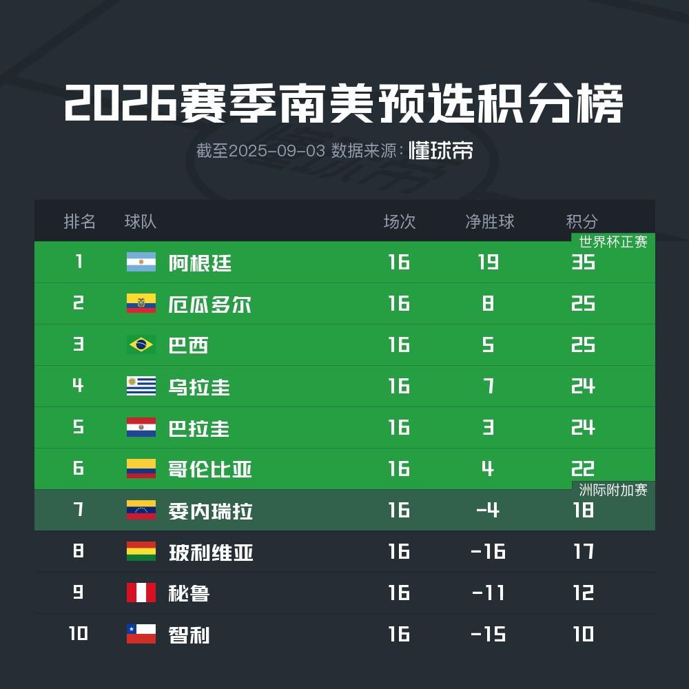 2026赛季南美预选积分榜